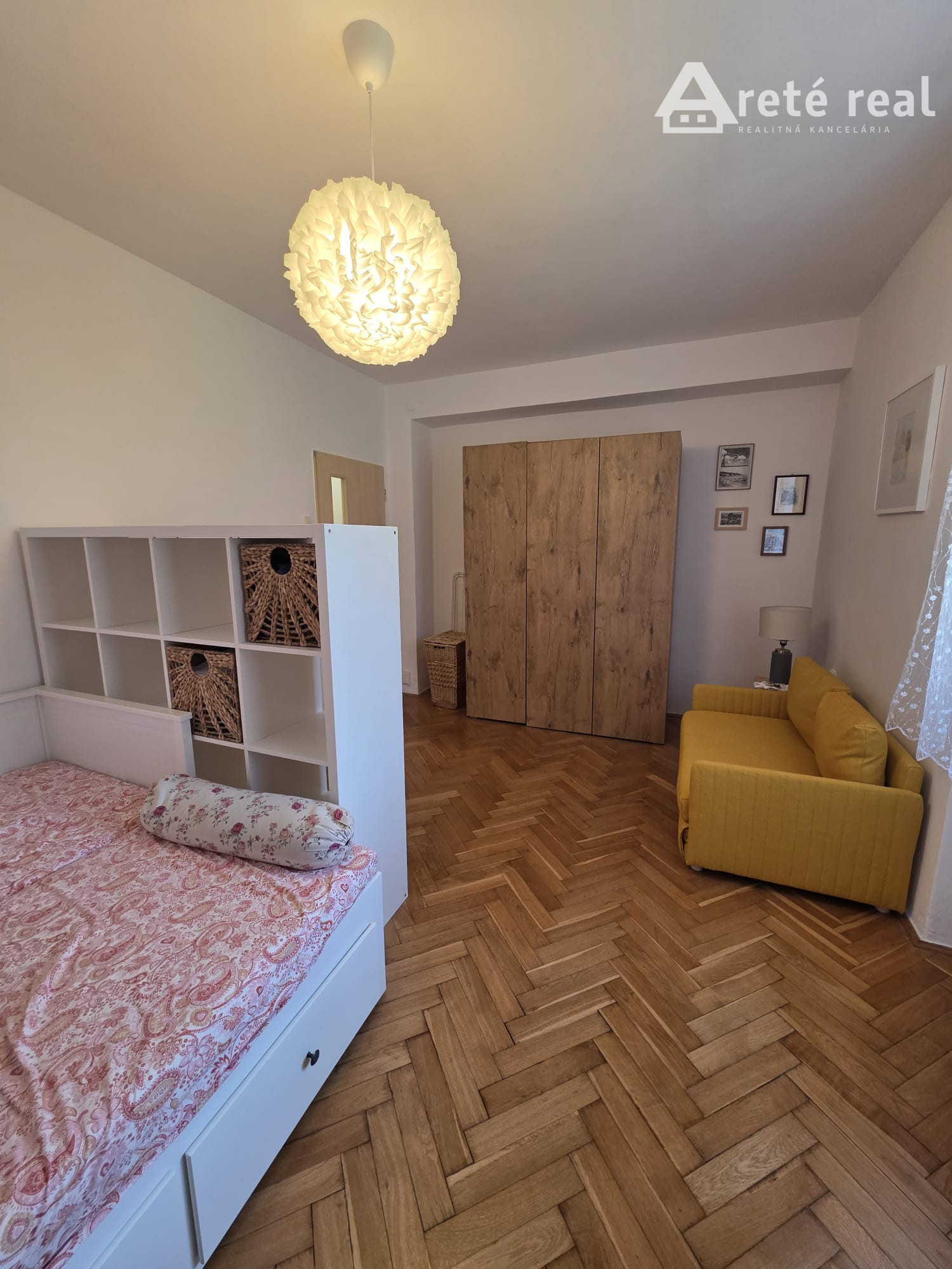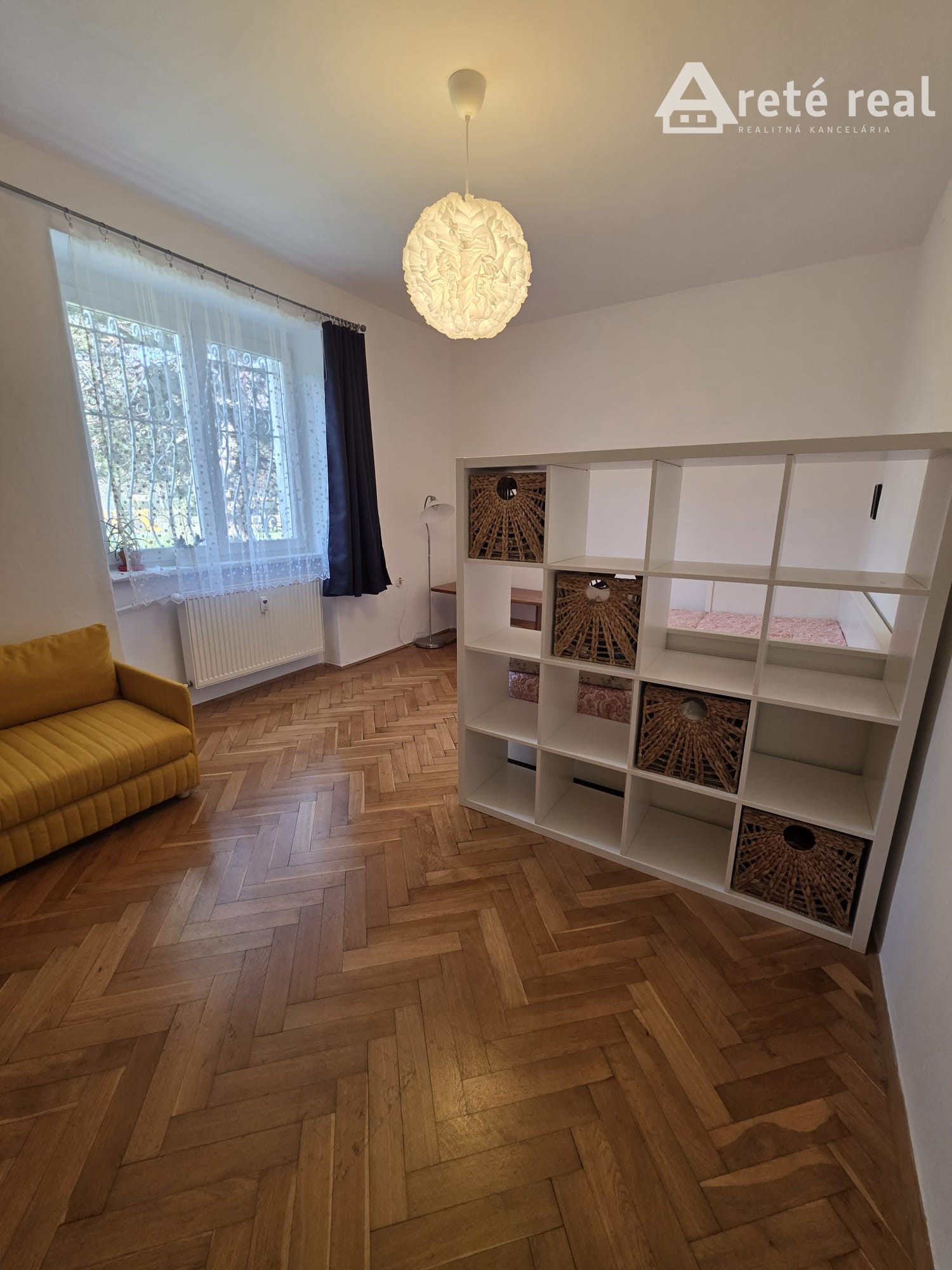 Byt sa nachádza na prízemí tehlového bytového domu a je kompletne zariadený a pripravený na nasťahovanie. K dispozícii je skriňa, posteľ a rozkladacia sedačka. Interiér dopĺňajú drevené parkety, ktoré vytvárajú príjemnú atmosféru.