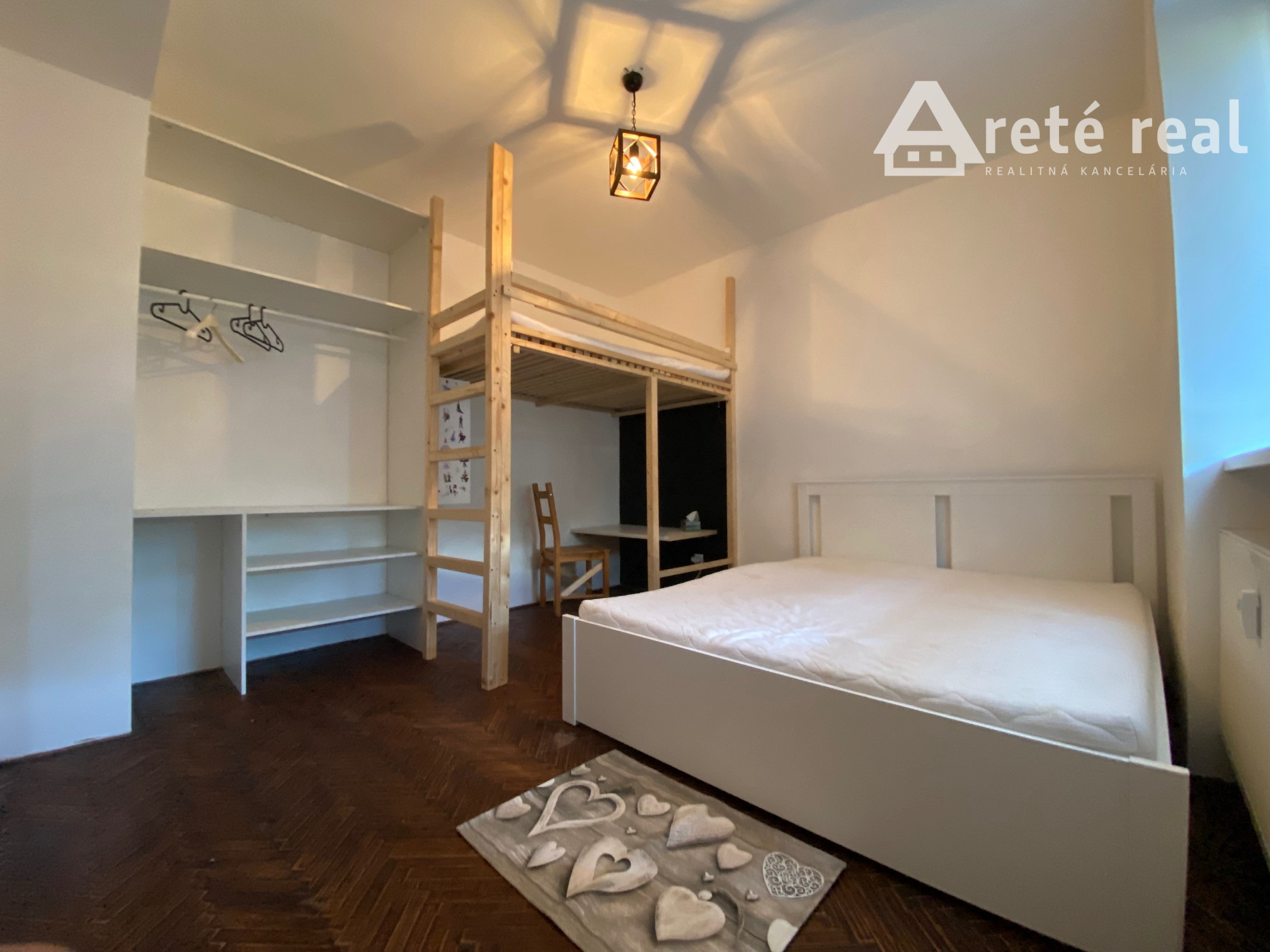 - samostatná izba s manželskou posteľou, pracovným kútom a detským kútom